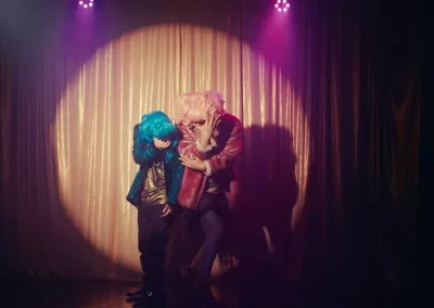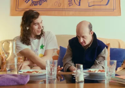 Una joven trans se queda fuera del apartamento que debería vigilar y no le queda más remedio que pedir ayuda al conserje del edificio, un hombre de mediana edad con síndrome de Down que rápidamente se gana su confianza y afecto. Vive a lo grande sin vergüenza es la historia de un encuentro inesperado, un momento de poesía urbana que captura la magia de la diversidad.