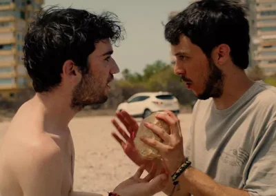 Tras pasar la mañana en la playa, un percance deja a Guillem y Nico encerrados fuera del coche, sin llaves, teléfono ni ropa. Lo que parece un pequeño contratiempo se convierte en un siniestro giro cuando, al pedir ayuda a un desconocido, una simple pregunta desencadena un encuentro inesperado y brutal: "¿Sois maricas?".