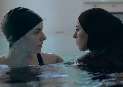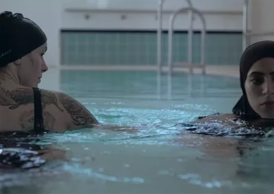 En una piscina de Berlín, las creencias de una joven feminista blanca se ven cuestionadas cuando una mujer de su edad entra a la piscina con hiyab. Su encuentro genera una tensión inesperada que difumina la línea entre la confrontación y la atracción.